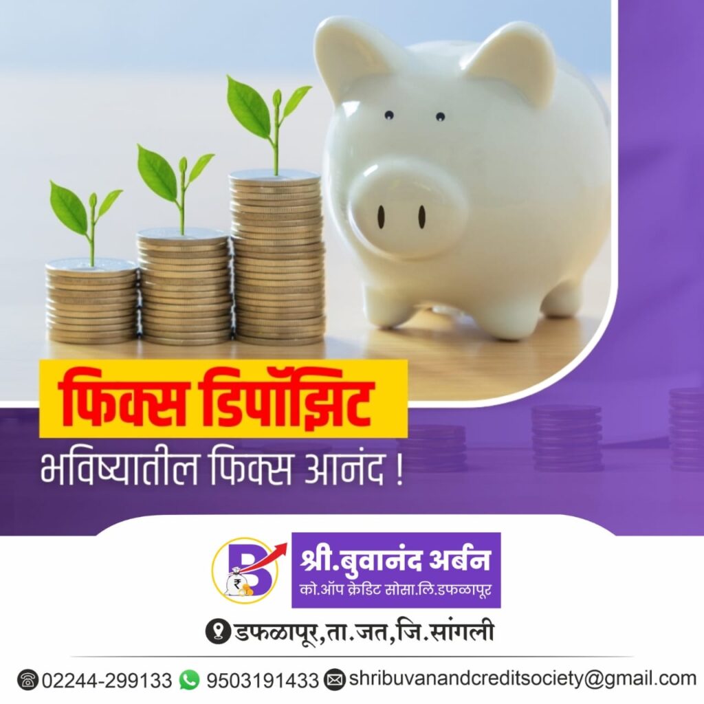श्री. बुवानंद को. ऑप. क्रेडिट सोसा. लि. डफळापूरच्या फिक्स डिपॉझिट योजनेत गुंतवणूक करून सुरक्षित आणि आकर्षक परतावा मिळवा.